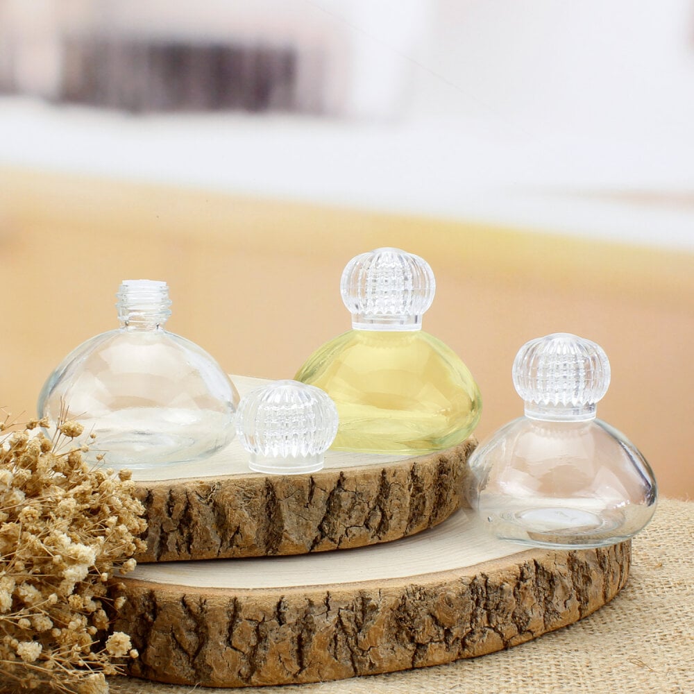 Yuvarlak ve yumuşak hatlara sahip zarif tasarımıyla şıklığı ön plana çıkarır. 50 cc hacmi ile kolonya, esans, oda kokusu, parfüm ve doğal yağ gibi sıvı ürünlerin sunumu için idealdir. Kaliteli ve kalın cam yapısı, içerisindeki kokuyu uzun süre bozulmadan muhafaza eder. Şeffaf formu sayesinde içindeki ürünün rengi estetik bir şekilde görünür ve dekoratif bir sunum sağlar.