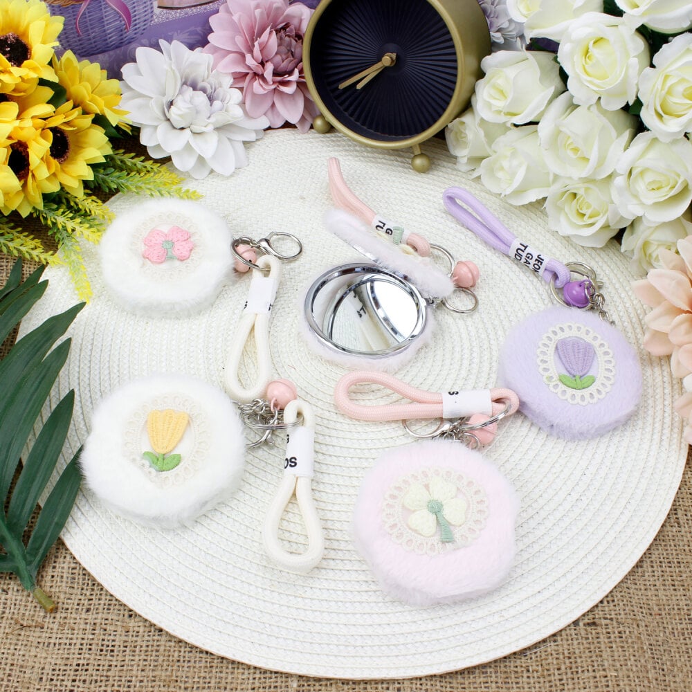 Gelince Haber VerAsorti Çiçek Desenli Bileklikli Peluş Ayna Anahtarlık