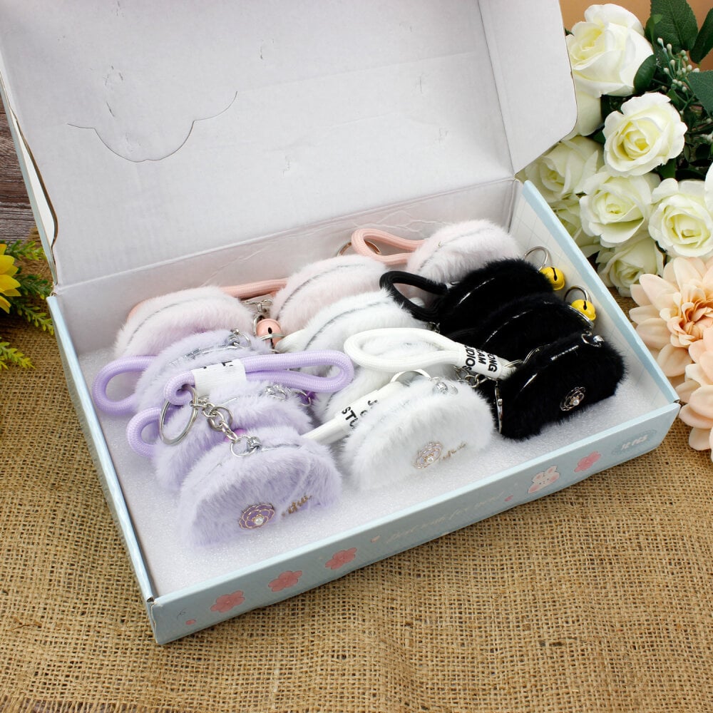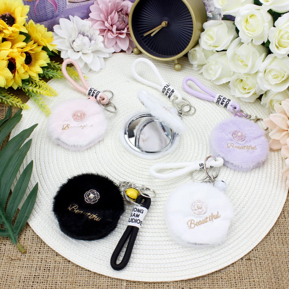 Gelince Haber VerAsorti İncili Çiçek Desenli Bileklikli Peluş Ayna Anahtarlık