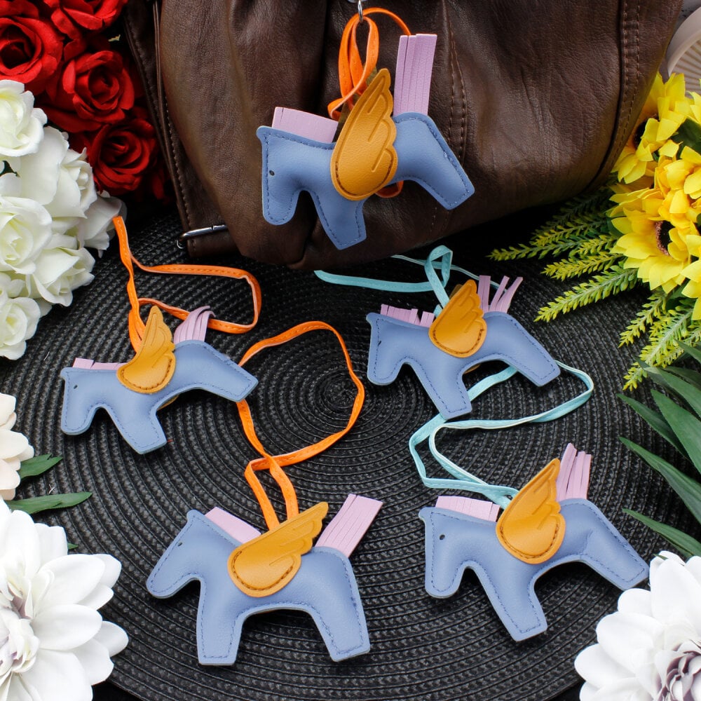 Çantalarınıza masalsı ve modern bir dokunuş eklemek için tasarlanmıştır. Suni deri malzemeden üretilmiş olup yumuşak dokusu ve kaliteli dikiş işçiliği ile dayanıklıdır. Mavi gövdeye eşlik eden sarı kanat detayı ve pembe yele tasarımı, ürünü hem şirin hem de dikkat çekici hale getirir. Askı ipi sayesinde çanta, anahtarlık, araba içi aksesuar veya hediye süsü olarak rahatlıkla kullanılabilir. Hafif yapısı sayesinde taşıma sırasında ekstra ağırlık oluşturmaz. Sevdiklerinize hediye ederken anlamlı ve sevimli bir dokunuş sunabilir, kendi kombinlerinize stil katan bir detay olarak kullanabilirsiniz. Günlük kullanımda renkli ve enerjik bir hava katar, özellikle genç ve dinamik tasarımları sevenler için ideal bir seçimdir. 8 x 9 cm
