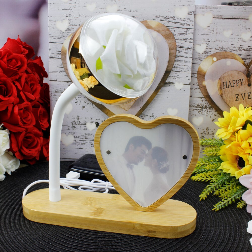 Gelince Haber VerBüyük Boy Beyaz Çiçekli Kalp Fotoğraflı Dekoratif Ahşap Lamba