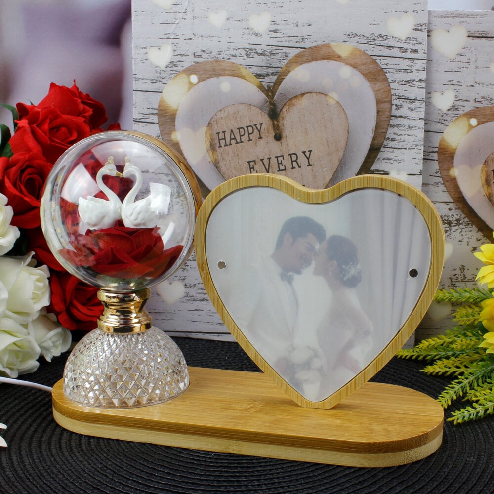 Gelince Haber VerBüyük Boy Kırmızı Çiçek Kalp Çerçeveli Fotoğraflı Dekoratif Ahşap Lamba