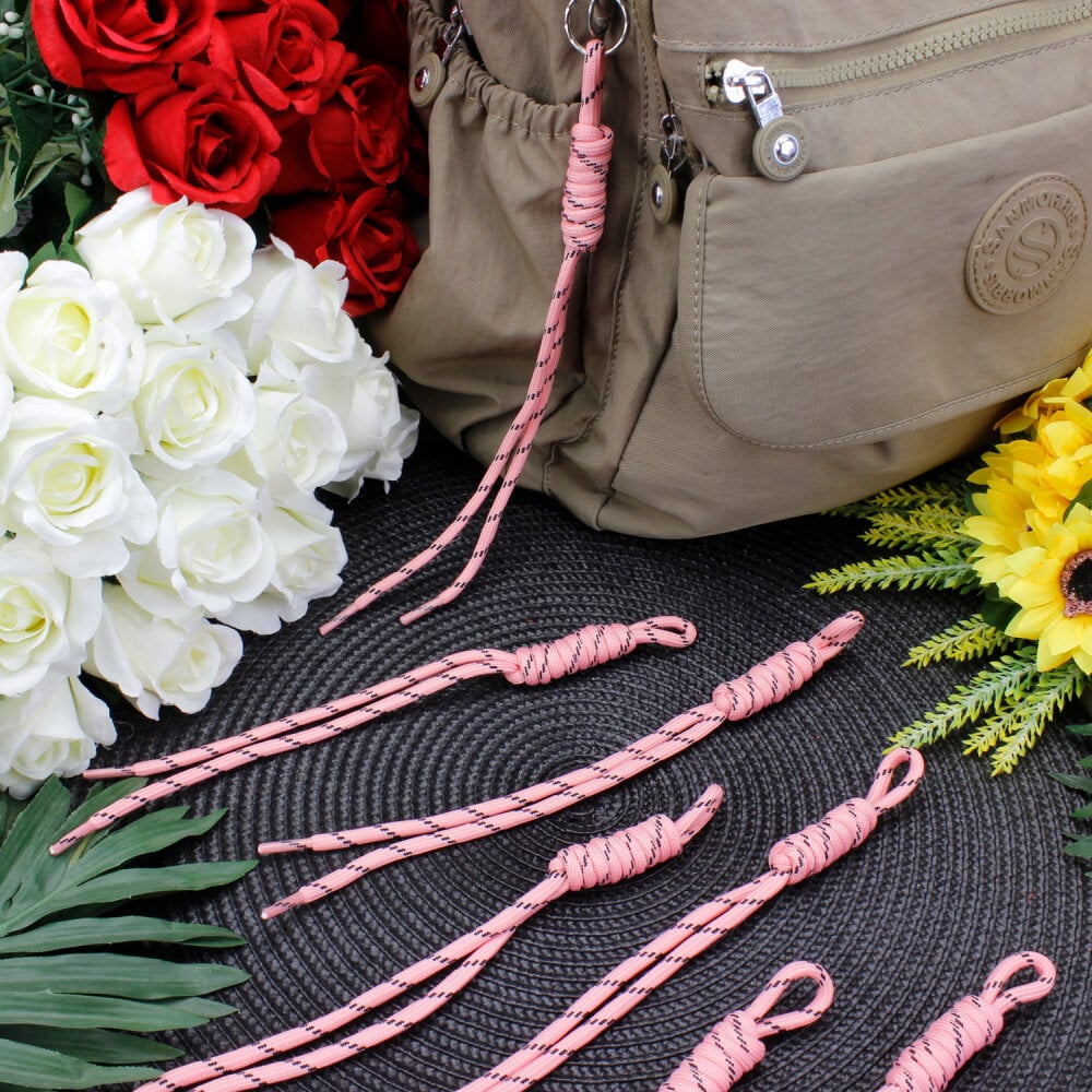 Çanta Charm Aksesuar İp Pembe 8,5 cm, hem modern hem de romantik tasarımıyla her çantada göz alıcı bir tamamlayıcıdır.