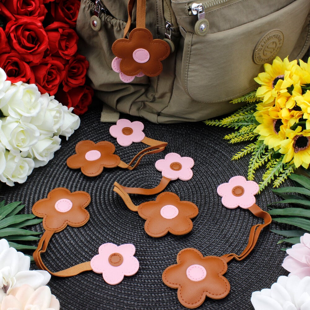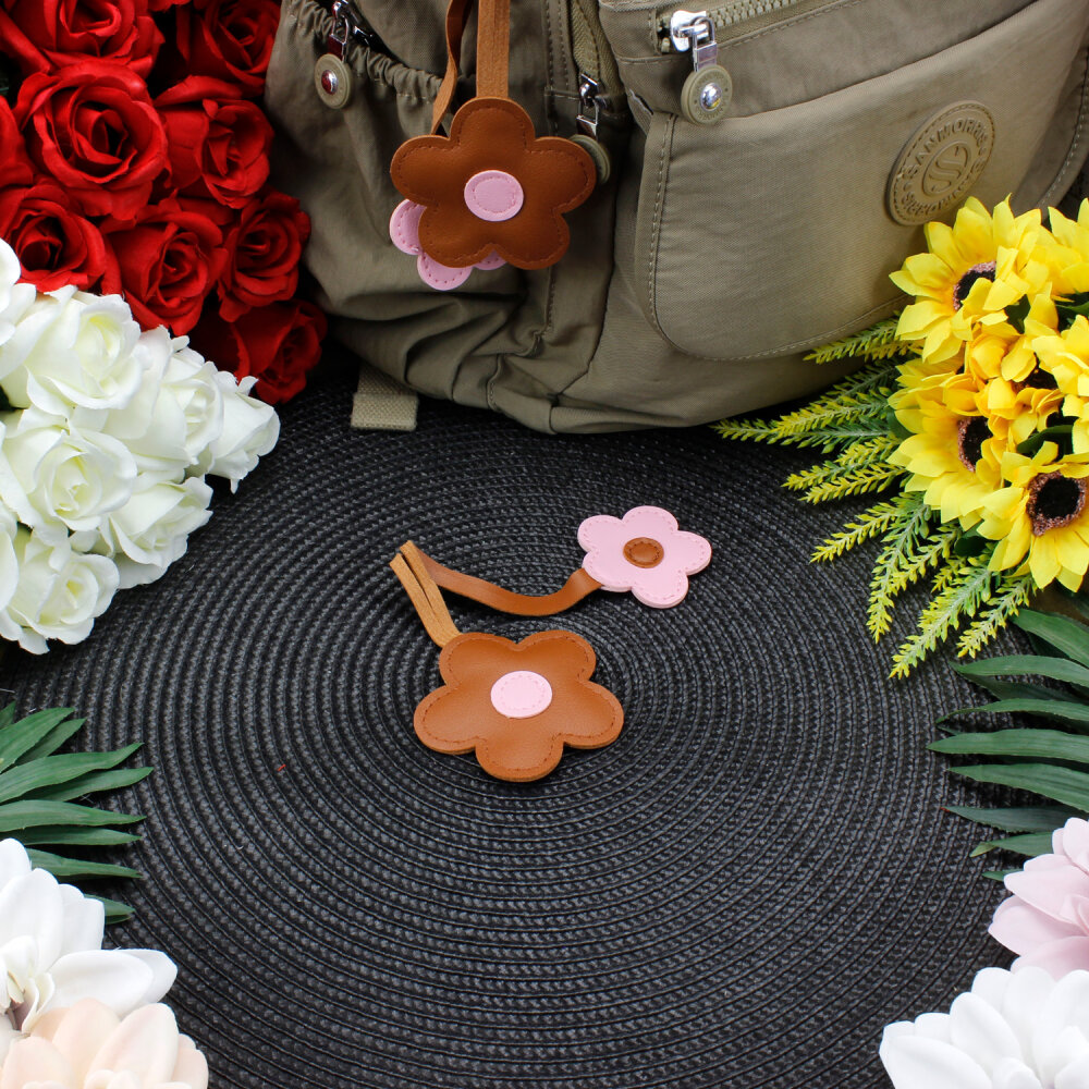 Çantalarınıza sıcak ve tatlı bir dokunuş eklemek için tasarlanmış şık bir aksesuardır. Yumuşak ve kaliteli suni deri malzemeden üretilmiştir. İki farklı çiçek boyutu ile gelir: büyük çiçek yaklaşık 7 cm, küçük çiçek ise yaklaşık 5 cm ölçüsündedir. Hafif yapısı sayesinde çantanıza ağırlık yapmaz ve rahatça taşınabilir.