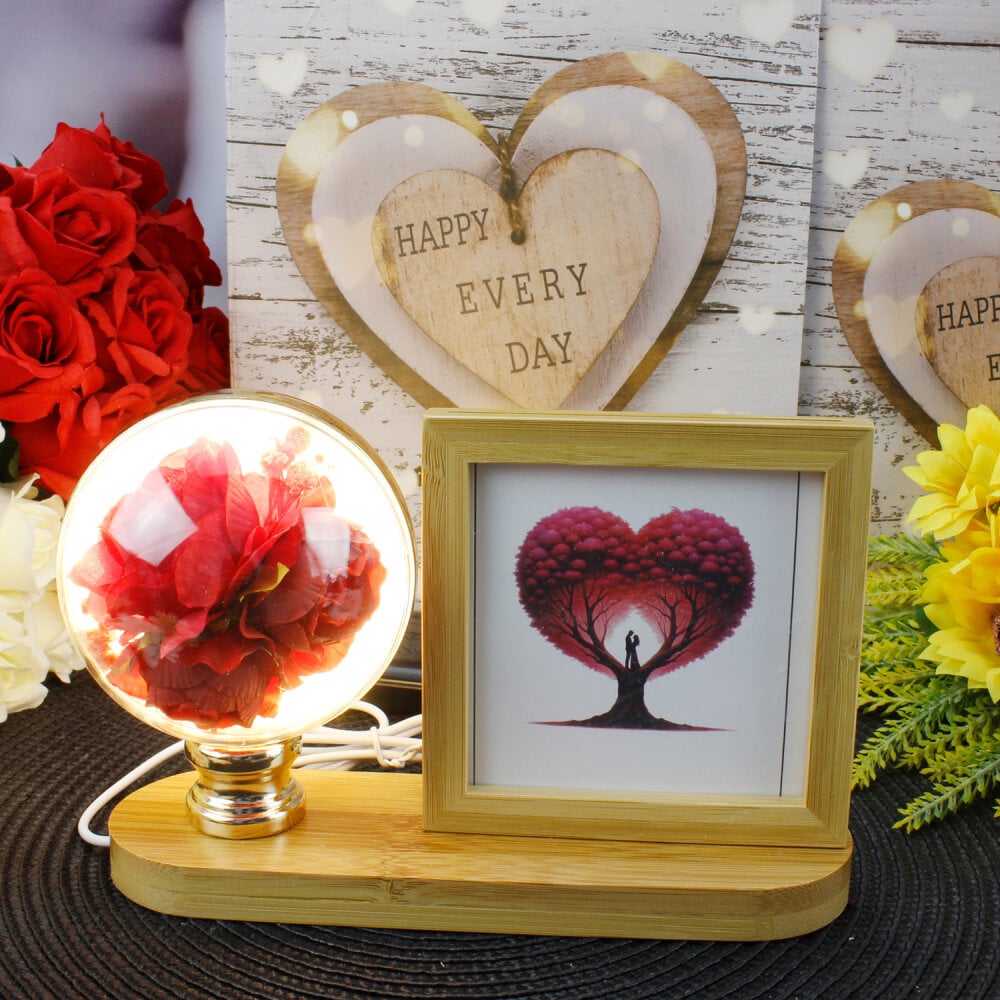 Gelince Haber VerKırmızı Çiçekli Fotoğraf Çerçeveli Dekoratif Ahşap Lamba