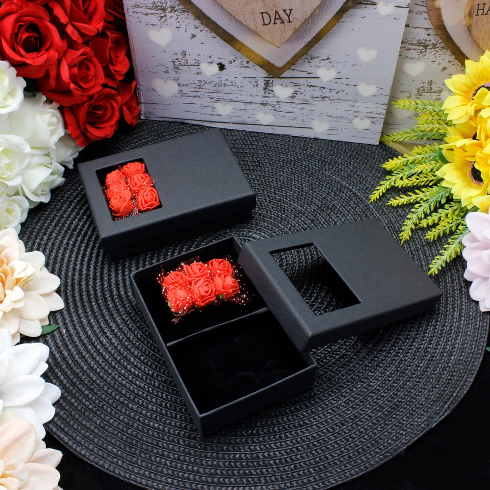 Gelince Haber VerKırmızı Gül Detaylı Şık Takı Kutusu Siyah