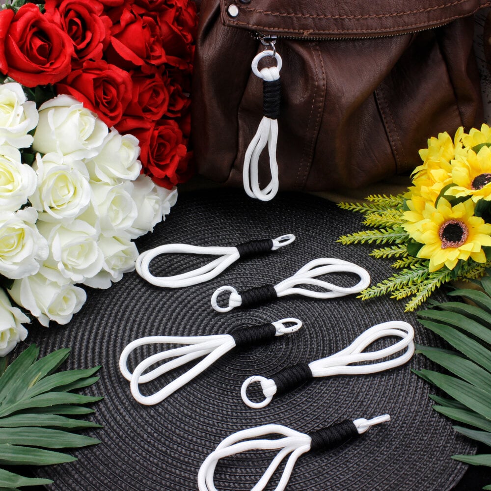 Sade ve zarif tasarımıyla çantalara modern bir dokunuş kazandırır. Parlak beyaz ip formu, siyah sargı detayıyla birleşerek dikkat çekici bir kontrast oluşturur. Dayanıklı malzemeden üretilmiş olup, çanta fermuarlarında, anahtarlıklarda veya dekoratif süslerde kolayca kullanılabilir. 15 cm uzunluğundaki kompakt yapısı sayesinde hem estetik hem pratik bir kullanım sunar. Beyaz renginin zarafeti, sade çantalarda bile modern bir şıklık yaratırken, siyah detay tasarıma dinamik bir karakter katar. Günlük kullanıma, hediye süslemelerine ve kişisel tasarımlara uygundur. Kaliteli dokusu sayesinde uzun süre formunu korur. Minimal tasarımıyla dikkat çeken bu charm, zarafet ve sadeliği sevenler için ideal bir seçimdir.