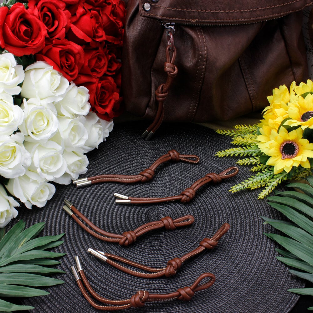 Doğal tonuyla sıcak ve zarif bir görünüm sunar. Kaliteli suni deri malzemeden üretilmiş olan bu aksesuar, metal uç detaylarıyla modern bir duruş sergiler. Çanta fermuarlarında, anahtarlıklarda veya dekoratif süslemelerde kolayca kullanılabilir. Kahverenginin klasik ve doğal tonu, vintage bir hava yaratırken çantalara karakter katar. Düğüm formundaki sade tasarımı sayesinde minimal bir şıklık sunar. Yaklaşık 17 cm uzunluğundaki bu aksesuar günlük kullanımda ve özel kombinlerde estetik bir tamamlayıcıdır. Suni derinin yumuşak dokusu ve parlak yüzeyi ürüne kaliteli bir görünüm kazandırır. Zarif, kullanışlı ve dayanıklı bir seçimdir.