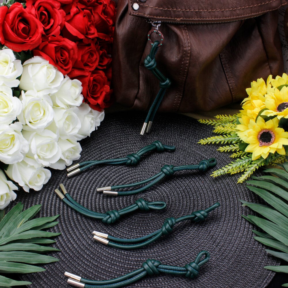 Doğadan ilham alan sofistike rengiyle çantalara zarif bir karakter kazandırır. Kaliteli suni deri malzemeden üretilmiş olup, uç kısımlarındaki metal detaylar ürüne modern bir ışıltı verir. Çanta fermuarlarında, anahtarlıklarda veya süs aksesuarı olarak kolayca kullanılabilir. Koyu yeşil tonunun asil duruşu, sade tasarımıyla birleşerek hem klasik hem de modern tarzlara uyum sağlar. Düğüm formundaki sade ama şık tasarımıyla dikkat çeker. Yaklaşık 17 cm uzunluğundaki bu aksesuar, hem günlük hem özel kombinlerde zarif bir tamamlayıcı olarak öne çıkar. Suni derinin kaliteli dokusu ve dayanıklı yapısı uzun ömürlü kullanım sunar. Doğallık ve zarafeti bir arada arayanlar için ideal bir tercihtir.