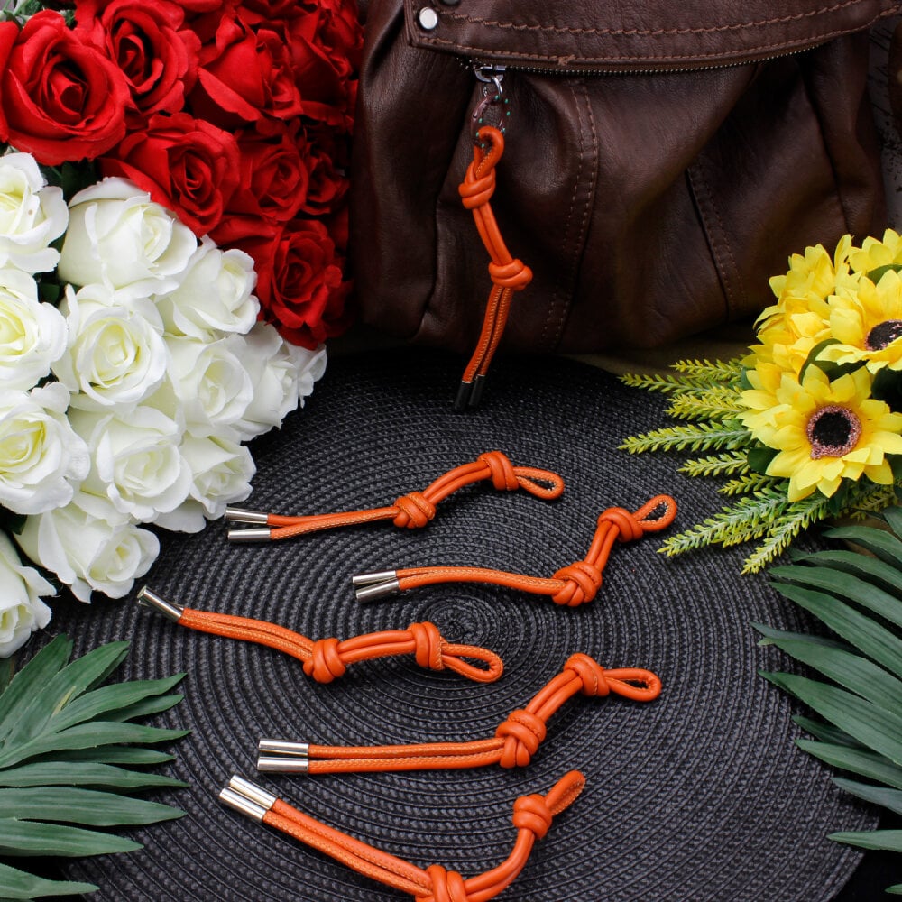 Enerjik rengiyle çantalara sıcak ve modern bir dokunuş kazandırır. Dayanıklı suni deri malzeme, metal uç detaylarla birleşerek şık bir görünüm oluşturur. Çanta fermuarlarında, anahtarlıklarda veya dekoratif tasarımlarda kullanılabilir. Turuncu renginin canlı tonu, günlük kullanıma pozitif bir enerji katar. Düğüm formundaki tasarımıyla minimal ama dikkat çekici bir görünüm sunar. Yaklaşık 17 cm uzunluğundaki bu aksesuar hem klasik hem spor tarzlara uyum sağlar. Suni derinin pürüzsüz dokusu ürüne zarif bir parlaklık kazandırır. Tarzına dinamizm katmak isteyenler için ideal bir tercihtir.