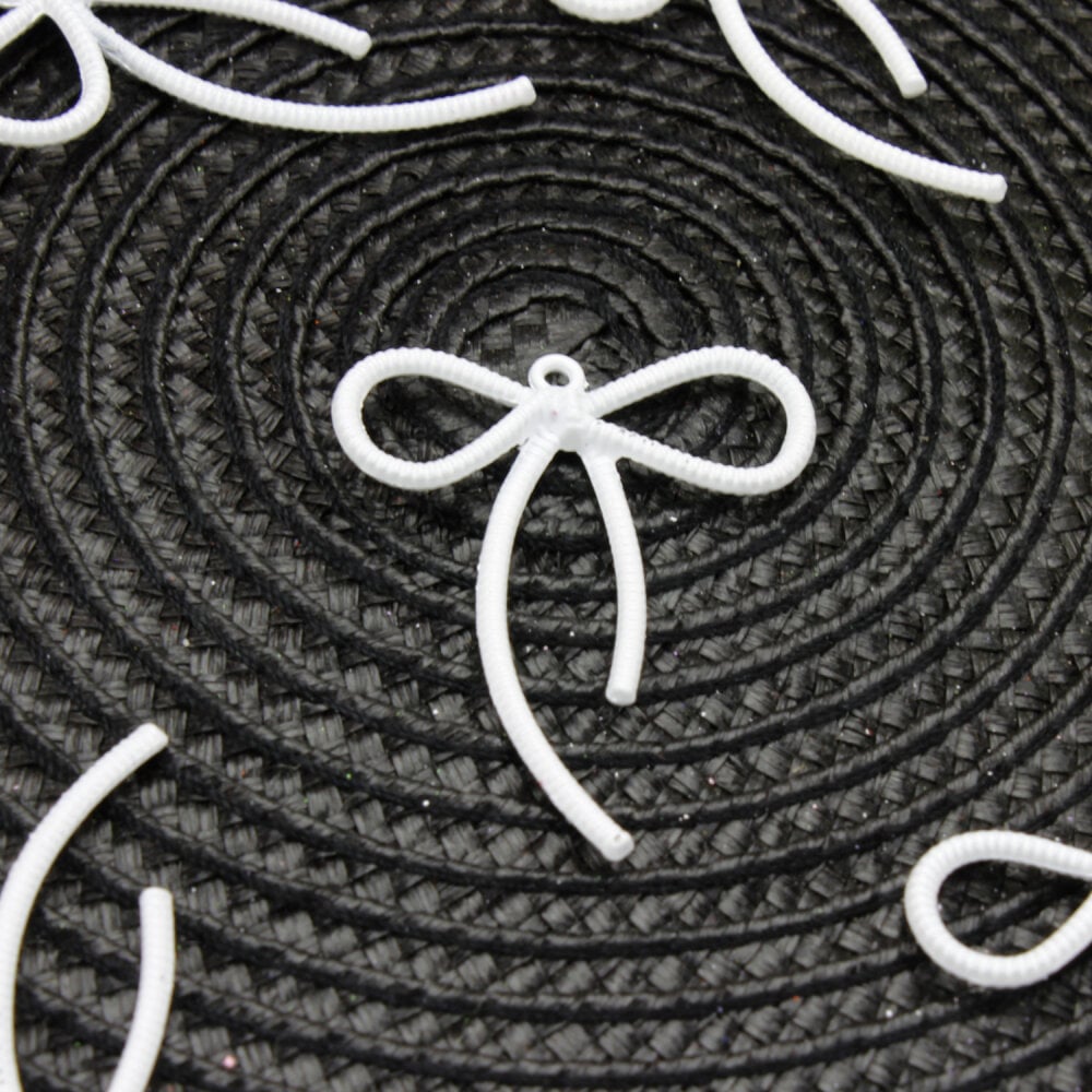 Beyaz rengin yalın ve modern görünümü, tasarımlara temiz bir estetik kazandırır. Fiyonk şeklindeki zarif formu, ürünlere romantik bir hava katarken üzerindeki küçük halka sayesinde anahtarlık aparatlarına veya klipslere kolayca monte edilebilir. El yapımı hediyeliklerde ve butik tasarımlarda estetik bir tamamlayıcıdır.