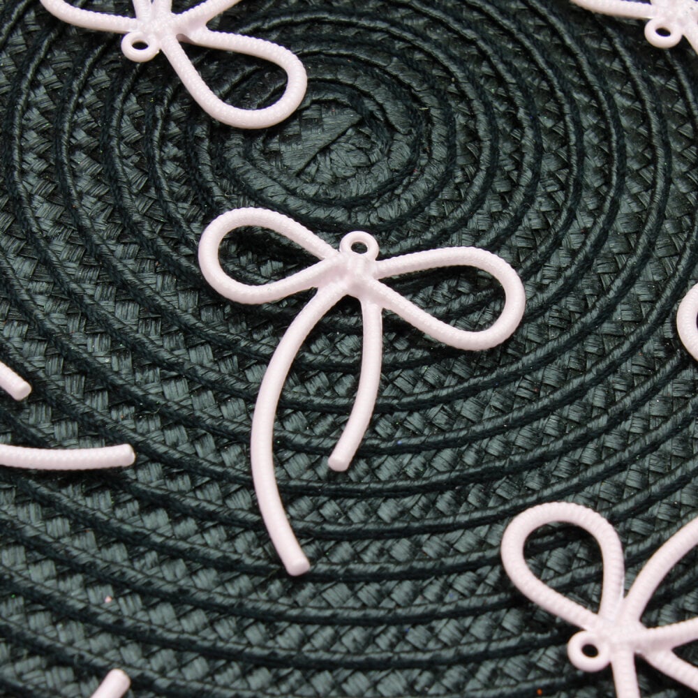 Pembenin yumuşak ve romantik tonu, tasarımlara feminen bir dokunuş kazandırır. Fiyonk formundaki ince detaylar ürüne zarafet katarken, üzerindeki küçük halka sayesinde anahtarlık aparatlarına veya zincirlere kolayca monte edilebilir. El yapımı hediyeliklerde, butik üretimlerde veya kişisel tasarımlarda estetik bir tamamlayıcıdır.