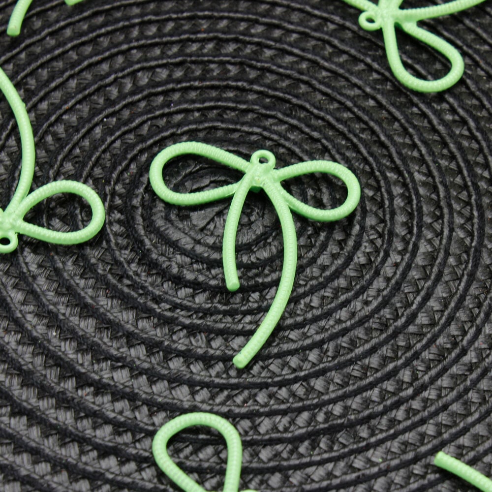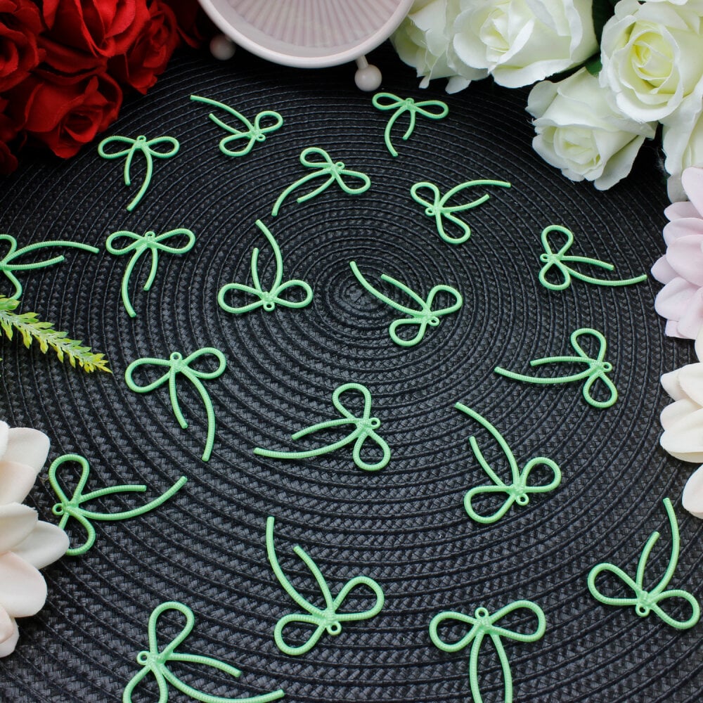 Yeşil rengin enerjik ve doğal tonu, tasarımlara ferah bir dokunuş kazandırır. Fiyonk formundaki zarif detaylar ürüne estetik bir görünüm katarken, üzerindeki küçük halka sayesinde anahtarlık aparatlarına veya klipslere kolayca monte edilebilir. El yapımı hediyeliklerde, butik tasarımlarda veya dekoratif ürünlerde tamamlayıcı bir parçadır.
