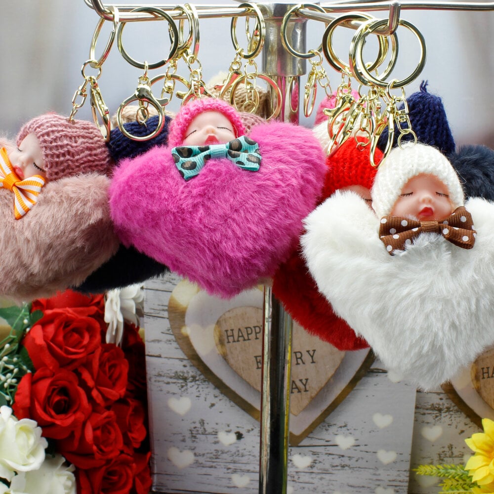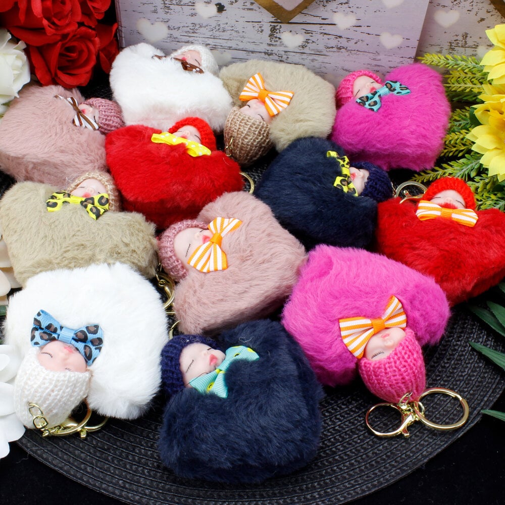 Gelince Haber VerRenkli Kalpli Porselen Bebek Bereli Ponpon Anahtarlık 12’Li Paket