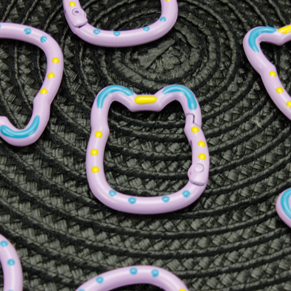 Zarif lila rengi ve sevimli kedi formuyla tasarımlarınıza yumuşak bir zarafet kazandırır. 3,5 cm boyutundaki bu charm, mavi ve sarı detaylarla süslenmiş renkli puantiyeleri sayesinde canlı ve dikkat çekici bir görünüm sunar. Çanta, anahtarlık, takı ya da dekoratif objelerde kullanıma uygundur.