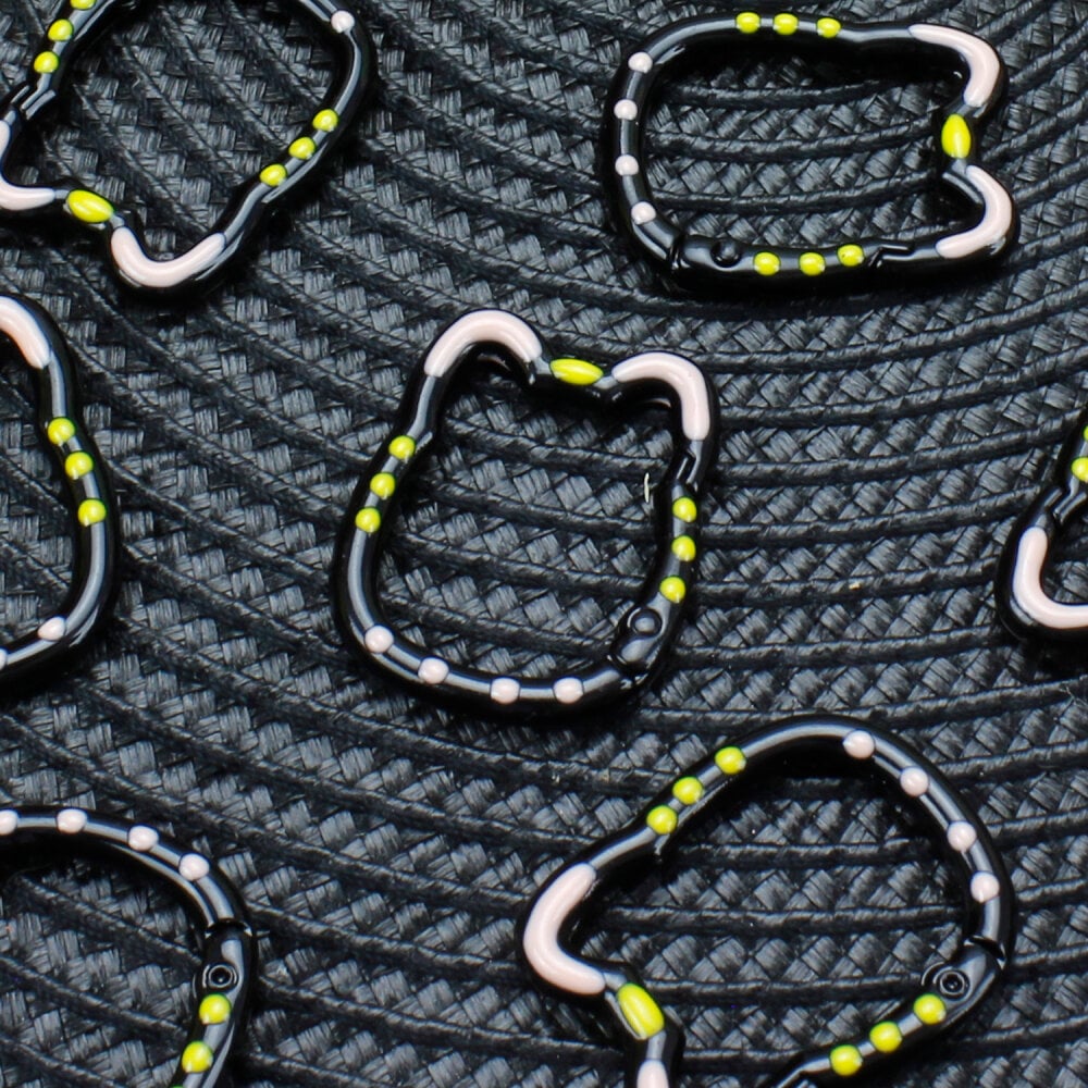 Zarif siyah tonunu sevimli kedi formuyla birleştirerek şık ve modern bir görünüm sunar. 3,5 cm boyutundaki bu charm, renkli puantiye detaylarıyla hareketlendirilmiş tasarımı sayesinde dikkat çeker. Çanta, anahtarlık, cüzdan veya takı süslemelerinde güçlü bir kontrast etkisi yaratır.