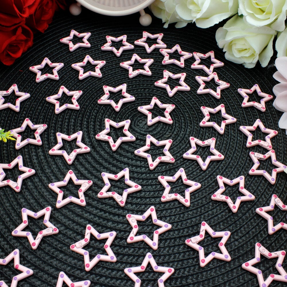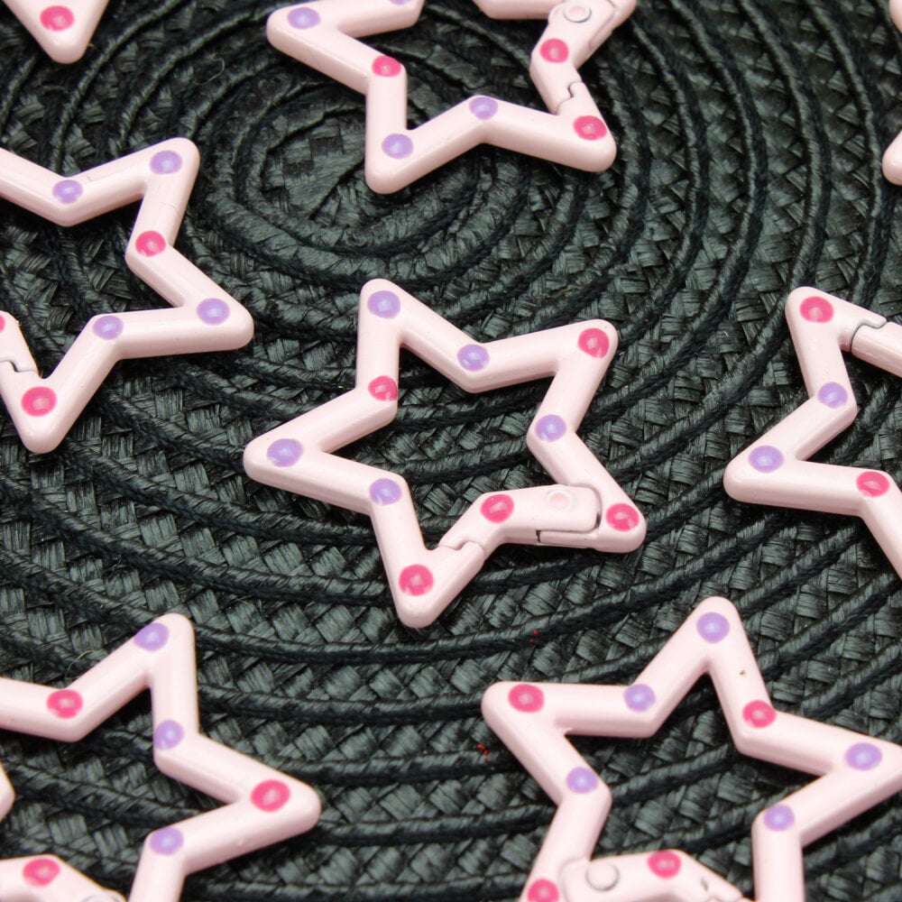 Renkli Puantiyeli Yıldız Çanta Charm Aksesuar Pembe, tatlı renk uyumu ve modern formuyla el emeği projelerinize ışıltılı bir dokunuş ekler.