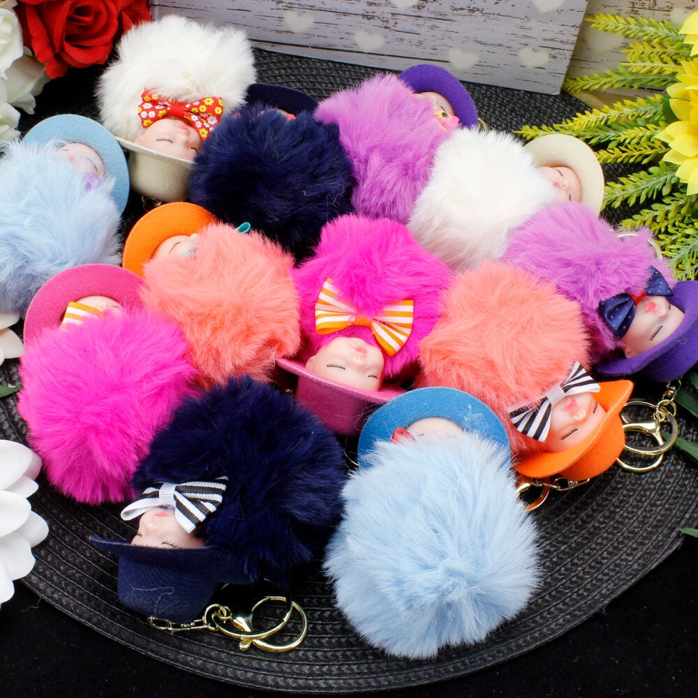 Gelince Haber VerRenkli Şapkalı Porselen Bebek Ponpon Anahtarlık 12’Li Paket