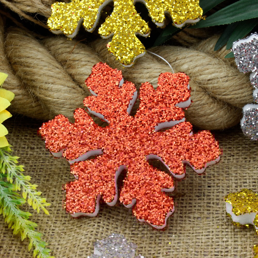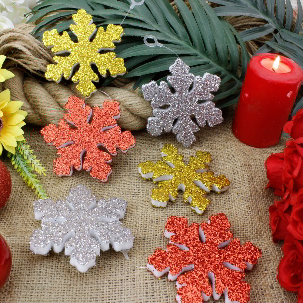 Yılbaşı dekorasyonlarında parıltılı ve gösterişli bir görünüm oluşturmak isteyenler için ideal bir süsleme setidir. Her pakette altı adet kar tanesi bulunur ve ürünler altın, gümüş ve kırmızı gibi dikkat çekici renklerde payetli yüzeylere sahiptir. Hafif strafor malzeme sayesinde kolayca asılabilir, kapı ve duvar süslemelerinde kullanılabilir, yılbaşı ağacına rahatlıkla yerleştirilebilir. 9 cm boyutundaki ideal ölçüsü, hem tek başına hem de diğer süslerle birlikte etkileyici bir bütünlük sağlar. Masa düzenlemeleri, hediye paketleme detayları, vitrin hazırlıkları ve parti alanları için de şık bir tamamlayıcıdır. Parlak yüzeyi ışığı güzel yansıtarak ortamda sıcak ve neşeli bir yeni yıl atmosferi oluşturur. Hem ev hem de profesyonel dekorasyonlarda ekonomik, pratik ve yüksek görselliğe sahip bir süsleme çözümüdür. 9CM
