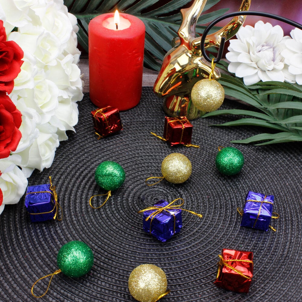 Yılbaşı dekorasyonlarına hareketli, renkli ve ışıl ışıl bir hava katmak için tasarlanmıştır. Paket içerisinde simli ağaç topları ve mini hediye kutusu süsleri bulunmaktadır. Altın, kırmızı, yeşil ve mavi gibi yılbaşı ruhunu yansıtan canlı tonlar, ağacınıza ve dekor alanınıza göz alıcı bir parlaklık kazandırır. Tüm ürünlerin üzerinde hazır asma ipi bulunduğu için çam ağacına, çelenklere, kapı süslerine, yılbaşı sepetlerine veya masa düzenlemelerine pratik şekilde uygulanabilir. Hafif yapıları sayesinde dalları aşağı çekmez, kolayca yerleştirilir ve dekor bütünlüğü sağlar. Ev, ofis, mağaza vitrinleri, kafe konseptleri ve organizasyon süslemelerinde kullanıma uygundur. 12’li ekonomik paket içeriği, tek ağaç süslemek veya küçük alan dekorasyonu oluşturmak için ideal bir çözüm sunar. Yeni yıl atmosferini eğlenceli ve şık bir şekilde yansıtır.